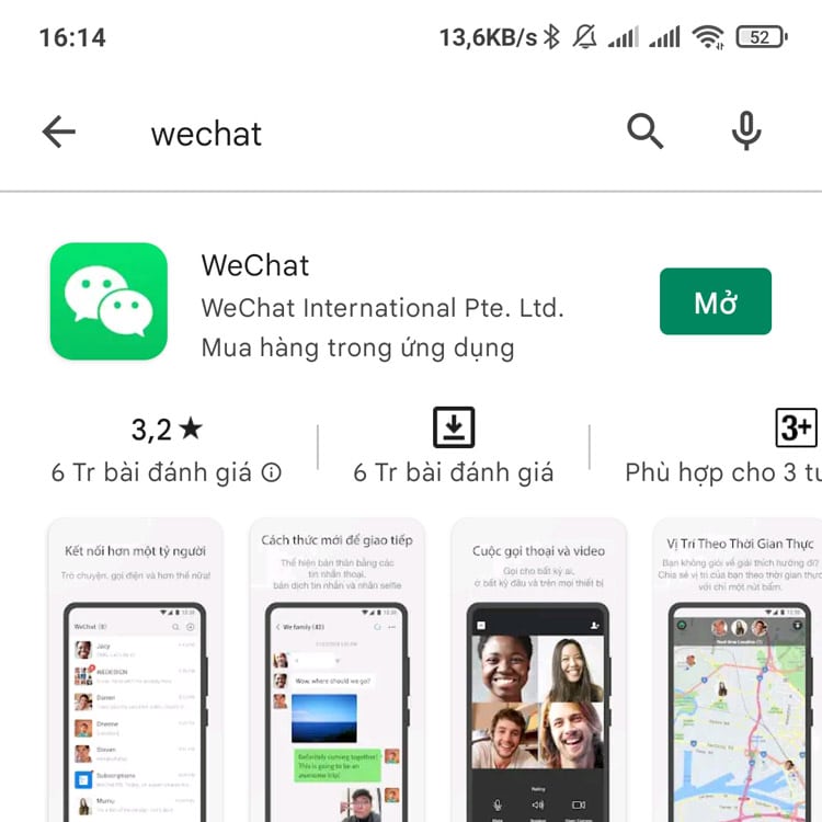 Bước 2: tìm kiếm bằng từ khóa “wechat”, để tìm thấy chính xác ứng dụng cần cài đặt. Hãy chắc chắn biểu tượng ứng dụng bạn cài đặt giống với hình ảnh ví dụ của chúng tôi.